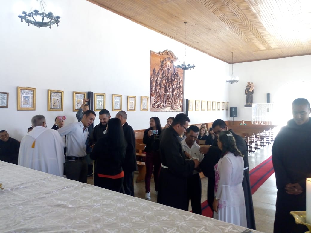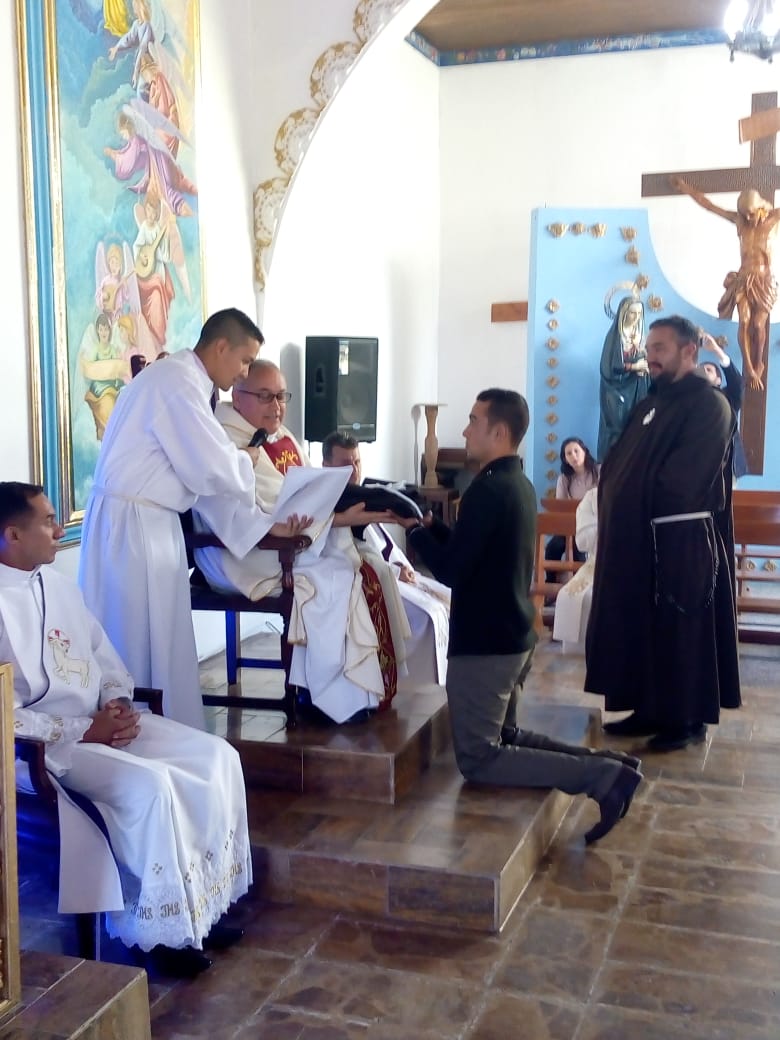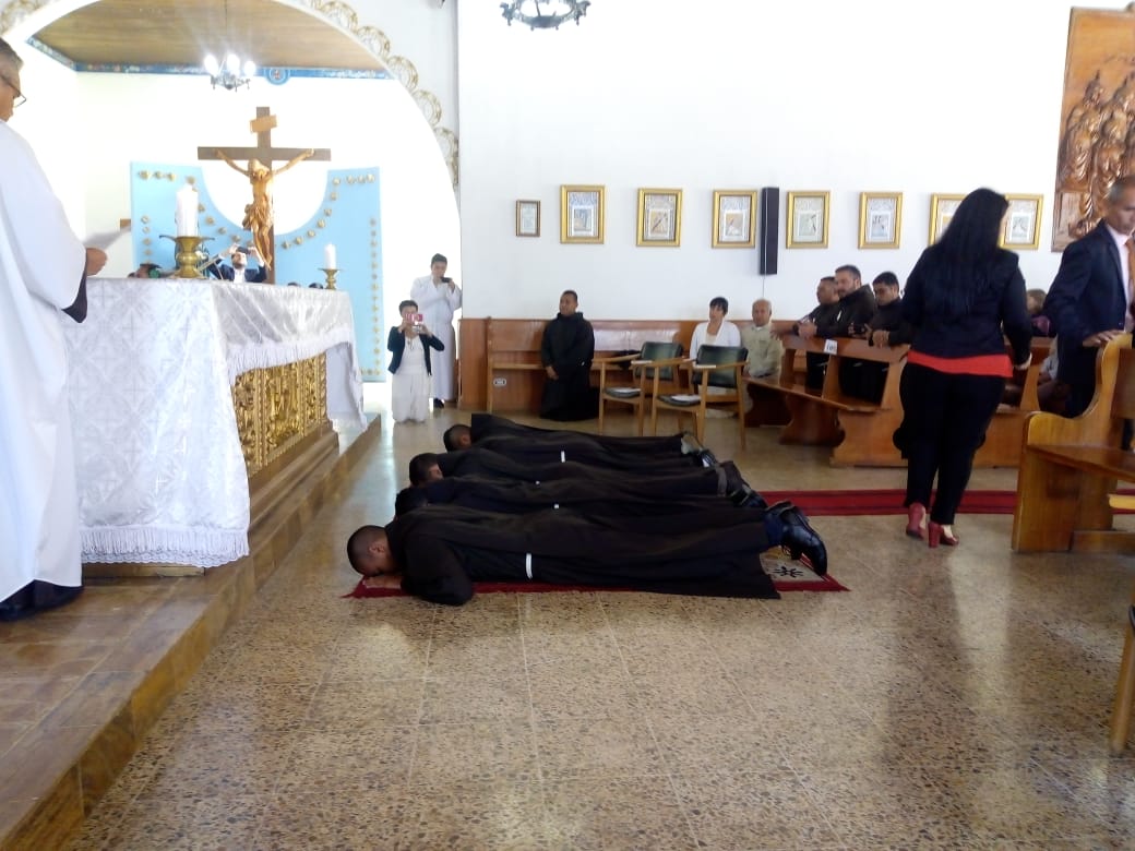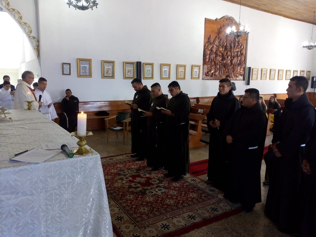 Siguiendo la costumbre, como cada 8 de diciembre en el seno de la Provincia San José, en la fiesta de la Inmaculada Concepción, cinco jóvenes novicios, pronunciaron sus primeros votos religiosos en la Capilla de nuestro Seminario Luis Amigó La Chaparrita en Bogotá. Los hermanos neoprofesos son: Fr. Dubier Eduardo Montoya Arismendy, Fr. Edwin Alexis Betancur Taborda, Fr. Modesto Uranoy Tamacuine, Fr. Fredy Enrique Mayo Martínez y Fr. Alfredo Soliz Zurita. Durante la celebración eucarística presidida por el Padre, Carlos Cardona Quiceno, Superior Provincial, se comprometieron y prometieron ante los hermanos consagrados, padres, amigos y conocidos, llegados para animarles, a vivir los votos de pobreza, castidad y obediencia. En su homilía, el Padre Provincial habló sobre la importancia que reviste el compromiso adquirido por los nuevos profesos y les aconsejó que “se dejaran seducir por el Maestro de Nazaret, pobre, casto y obediente”, ya que por él, si siguen esos consejos, conseguirán la felicidad. Tras la homilía tuvo lugar el rito de profesión y la entrega del hábito, de la regla de vida y de las constituciones. Después de la misa, los familiares, amigos y conocidos que acudieron numerosos, felicitaron a los neoprofesos, y en un ambiente fraternal y de convivencia compartieron como familia Amigoniana este regalo que supone la vida de estos nuevos hermanos.