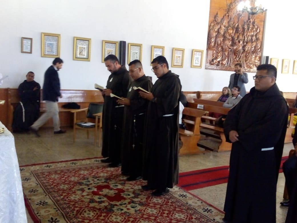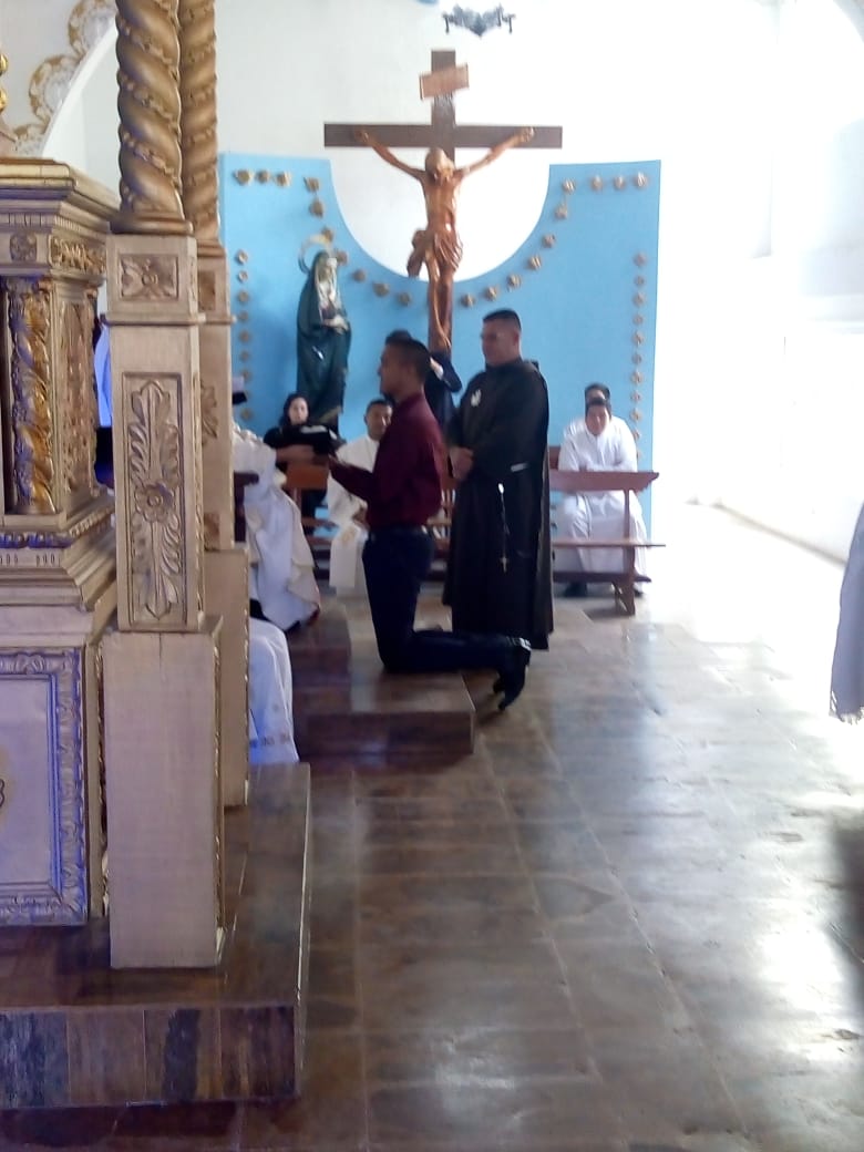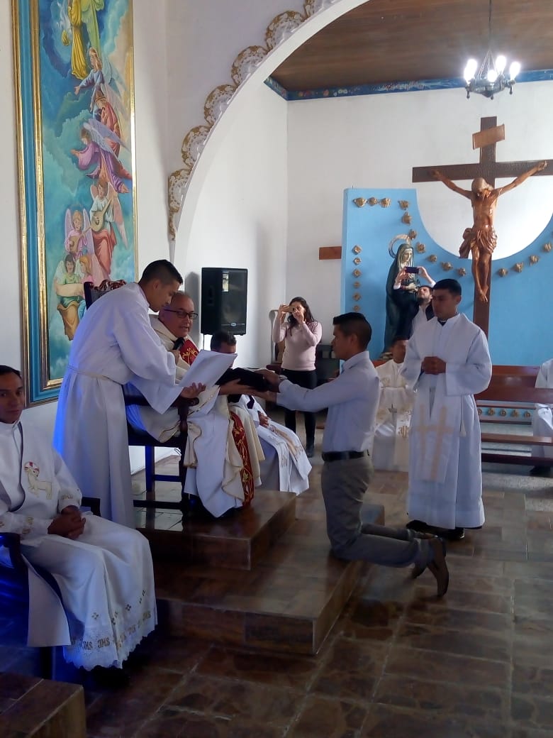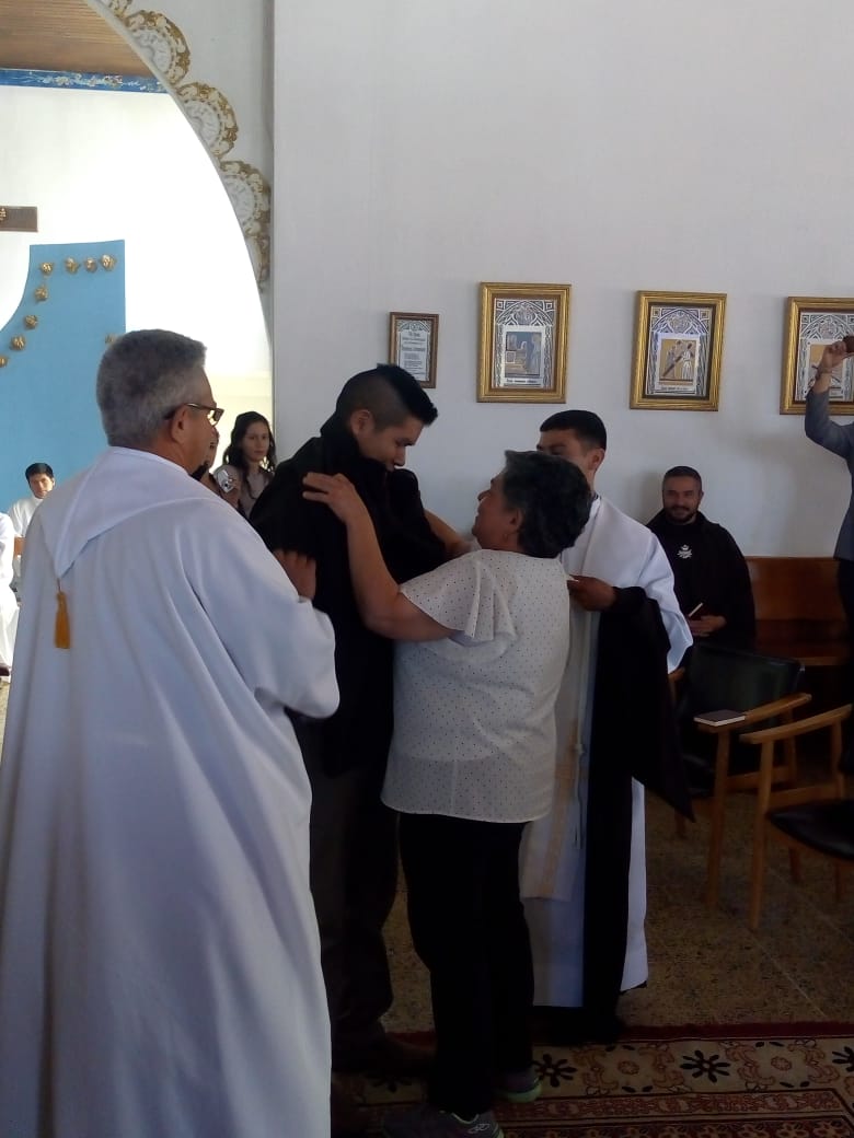 Siguiendo la costumbre, como cada 8 de diciembre en el seno de la Provincia San José, en la fiesta de la Inmaculada Concepción, cinco jóvenes novicios, pronunciaron sus primeros votos religiosos en la Capilla de nuestro Seminario Luis Amigó La Chaparrita en Bogotá. Los hermanos neoprofesos son: Fr. Dubier Eduardo Montoya Arismendy, Fr. Edwin Alexis Betancur Taborda, Fr. Modesto Uranoy Tamacuine, Fr. Fredy Enrique Mayo Martínez y Fr. Alfredo Soliz Zurita. Durante la celebración eucarística presidida por el Padre, Carlos Cardona Quiceno, Superior Provincial, se comprometieron y prometieron ante los hermanos consagrados, padres, amigos y conocidos, llegados para animarles, a vivir los votos de pobreza, castidad y obediencia. En su homilía, el Padre Provincial habló sobre la importancia que reviste el compromiso adquirido por los nuevos profesos y les aconsejó que “se dejaran seducir por el Maestro de Nazaret, pobre, casto y obediente”, ya que por él, si siguen esos consejos, conseguirán la felicidad. Tras la homilía tuvo lugar el rito de profesión y la entrega del hábito, de la regla de vida y de las constituciones. Después de la misa, los familiares, amigos y conocidos que acudieron numerosos, felicitaron a los neoprofesos, y en un ambiente fraternal y de convivencia compartieron como familia Amigoniana este regalo que supone la vida de estos nuevos hermanos.