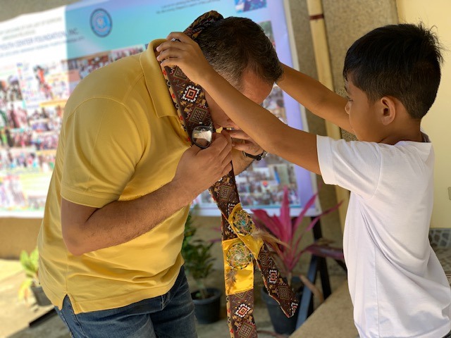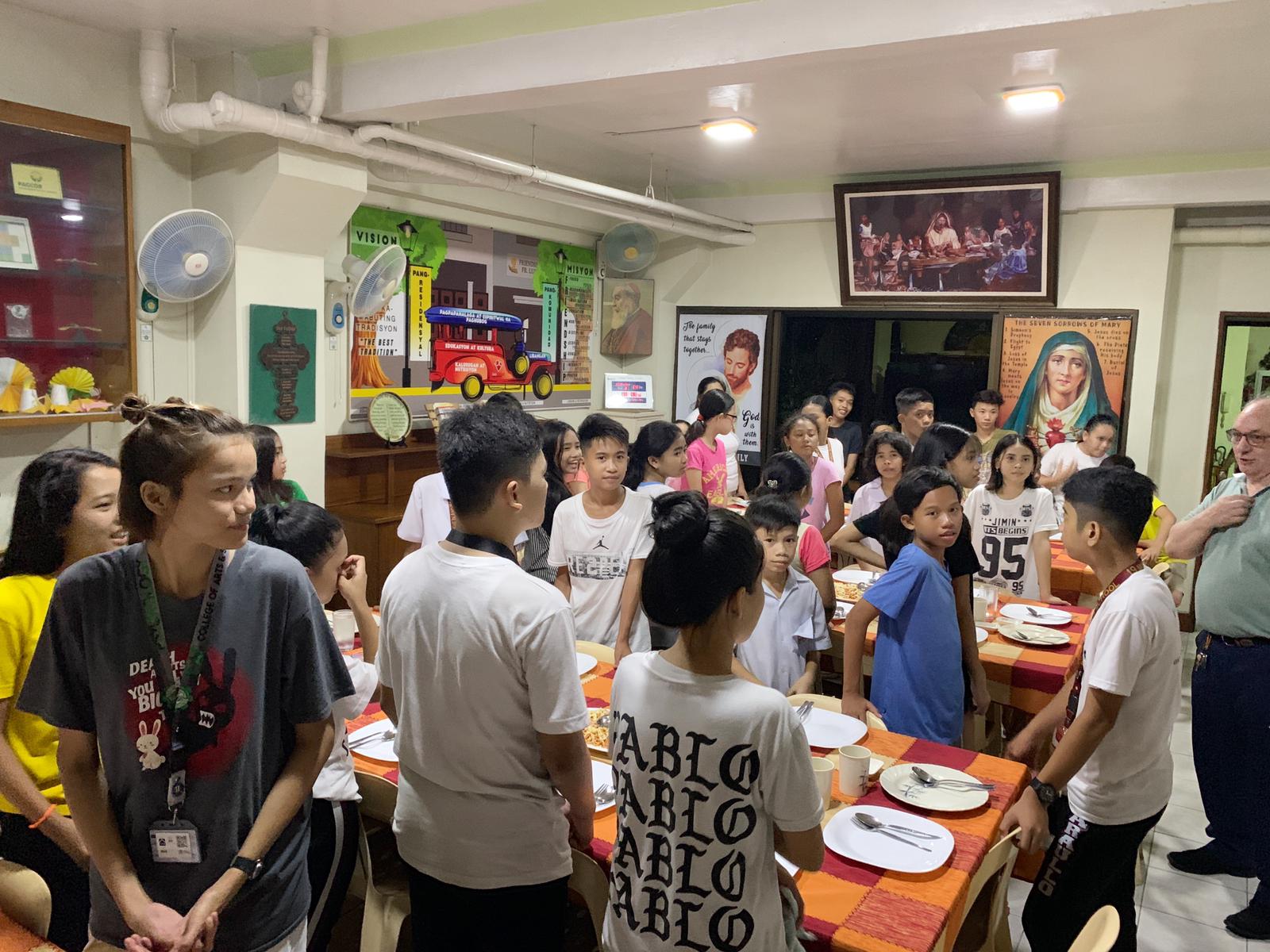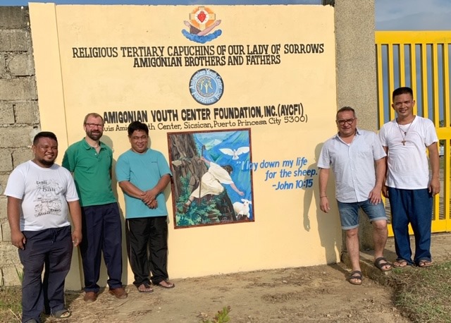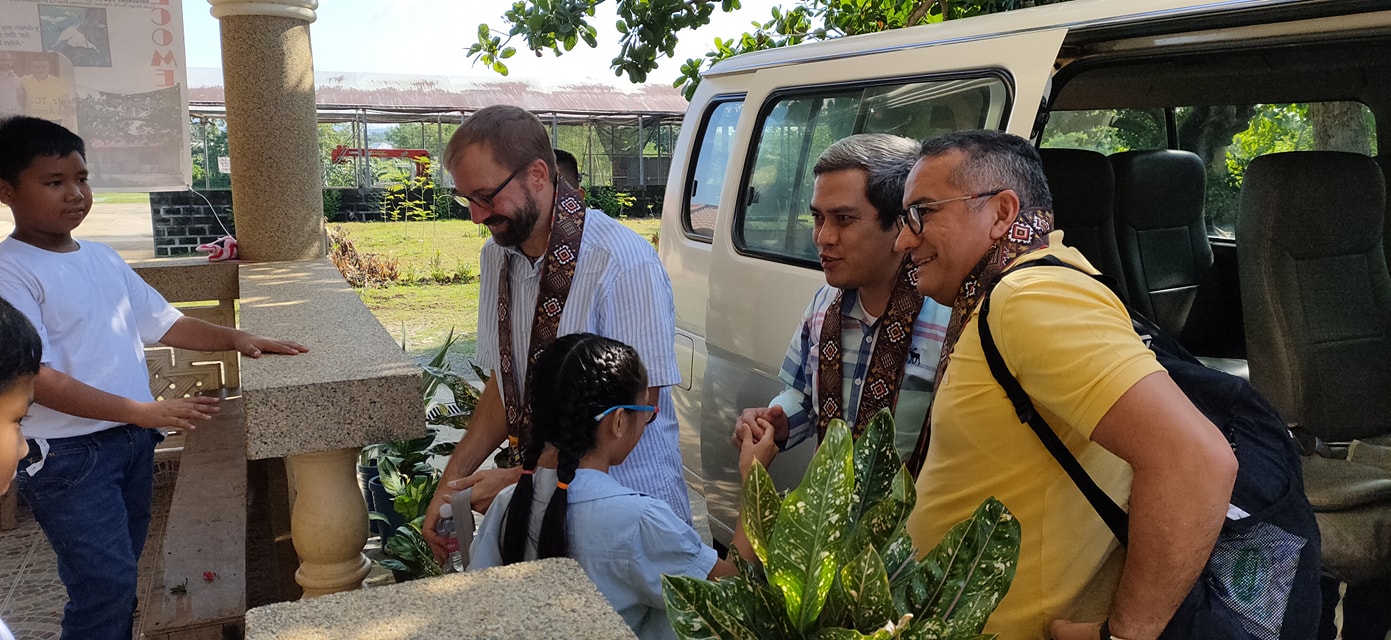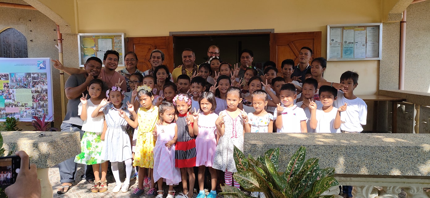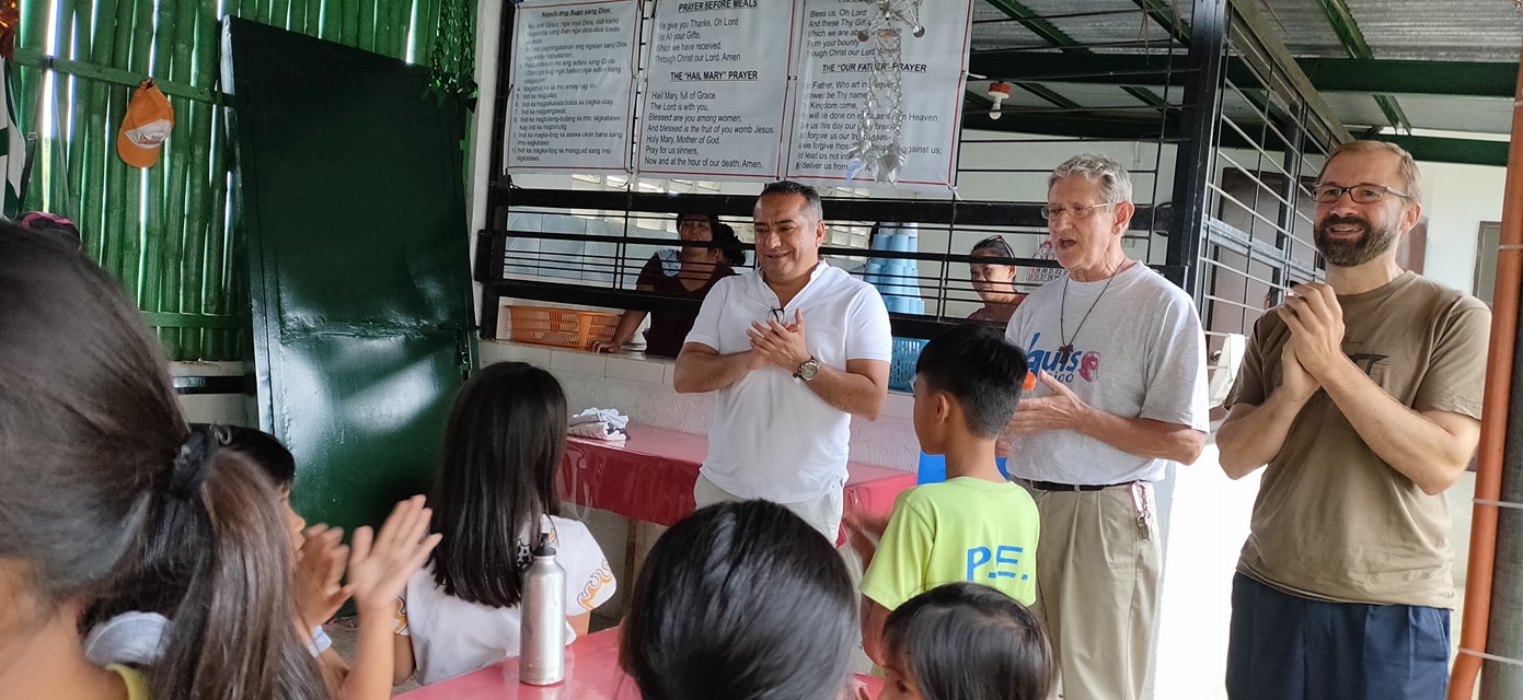 Acompañados siempre por el P. Roy Albuen, Consejero General y el P. Renante superior de la comunidad de Palawan. Al llegar se encontraron con tres hermanos: Fray Severino (Bengie), Fray Felix Malongo y Joseph De León, que hacen parte de esta comunidad. La bienvenida fue una experiencia significativa y llena de emociones, porque fueron los niños del programa quienes se encargaron de la misma. Han puesto un corbatín típico o Garland a cada miembro de los hermanos que hacen la visita y después hicieron un baile típico y un canto en lengua Filipina.
