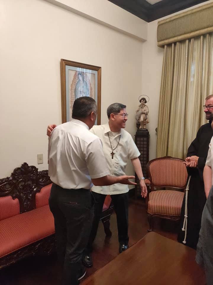 El día 15 en horas de la tarde, aprovechando la visita a Filipinas, el Padre General y comitiva se han reunido con el cardenal Tagle, arzobispo de Manila, entre los hermanos que le acompañaron se encontraban el P. Jenns Anno Müller, Vicario General, P. Roy Jenkins Albuen (Consejero General) Fr. Luis Ortiz, Fr. Mark Kelvin Tobías, y el P. Renante Pabilico.